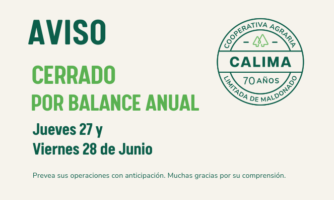 BALANCE ANUAL: El Jueves 27 y viernes 28 de junio la cooperativa permanecerá cerrada para realizar el conteo de sus artículos para el Balance Anual.