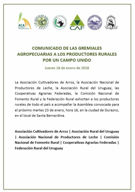 COMUNICADO DE LAS GREMIALES AGROPECUARIAS