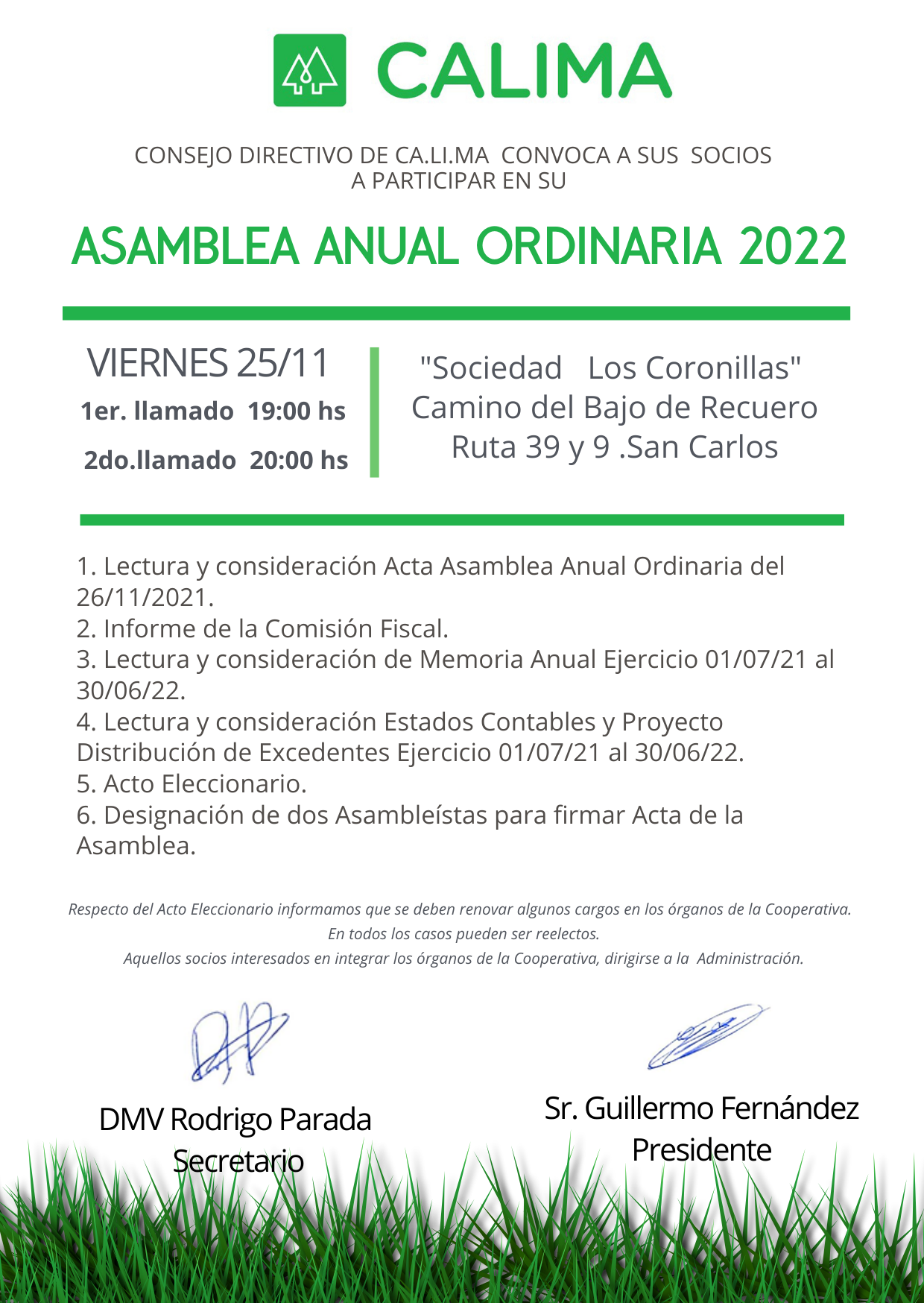CONVOCATORIA ASAMBLEA ANUAL ORDINARIA