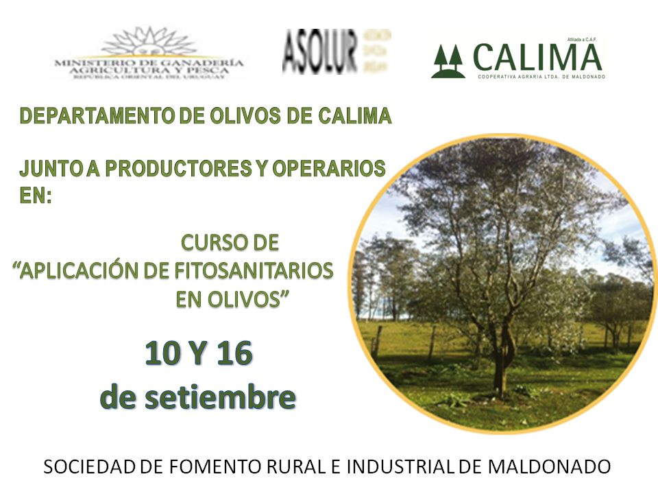 CALIMA y su Departamento de Olivos promueve Curso de aplicación de Fitosanitarios en Olivos, junto DIGEGRA (Dirección General de la Granja) y ASOLUR (Asociación Olivícola del Uruguay).